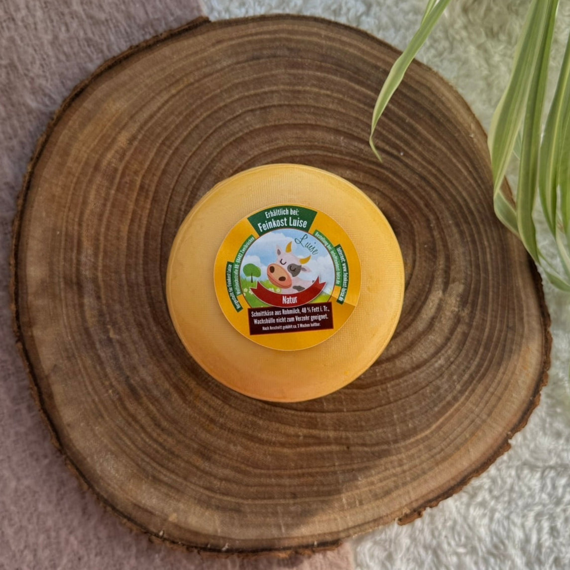 Unser Kuh-Käse Natur überzeugt durch seine pure Cremigkeit und den vollmundigen Geschmack frischer Rohmilch. Hergestellt in traditioneller Handarbeit, besticht dieser Käse durch seine natürliche, unverfälschte Note und passt zu jedem Anlass. Ideal für Genießer, die den reinen Käsegeschmack lieben und auf Zusatzstoffe verzichten möchten!