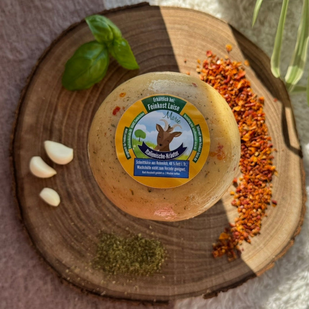 Unser Ziegen-Käse Italienische Kräuter vereint die milde Cremigkeit von hochwertigem Ziegenmilchkäse mit einer ausgewogenen Mischung mediterraner Kräuter. Frische Oregano-, Basilikum- und Thymiannoten verleihen diesem Käse ein intensives Aroma, das an sonnige Tage in Italien erinnert. Hergestellt in traditioneller Handarbeit, ist dieser Käse ideal für mediterrane Rezepte, herzhafte Snacks und kreative Käseplatten!